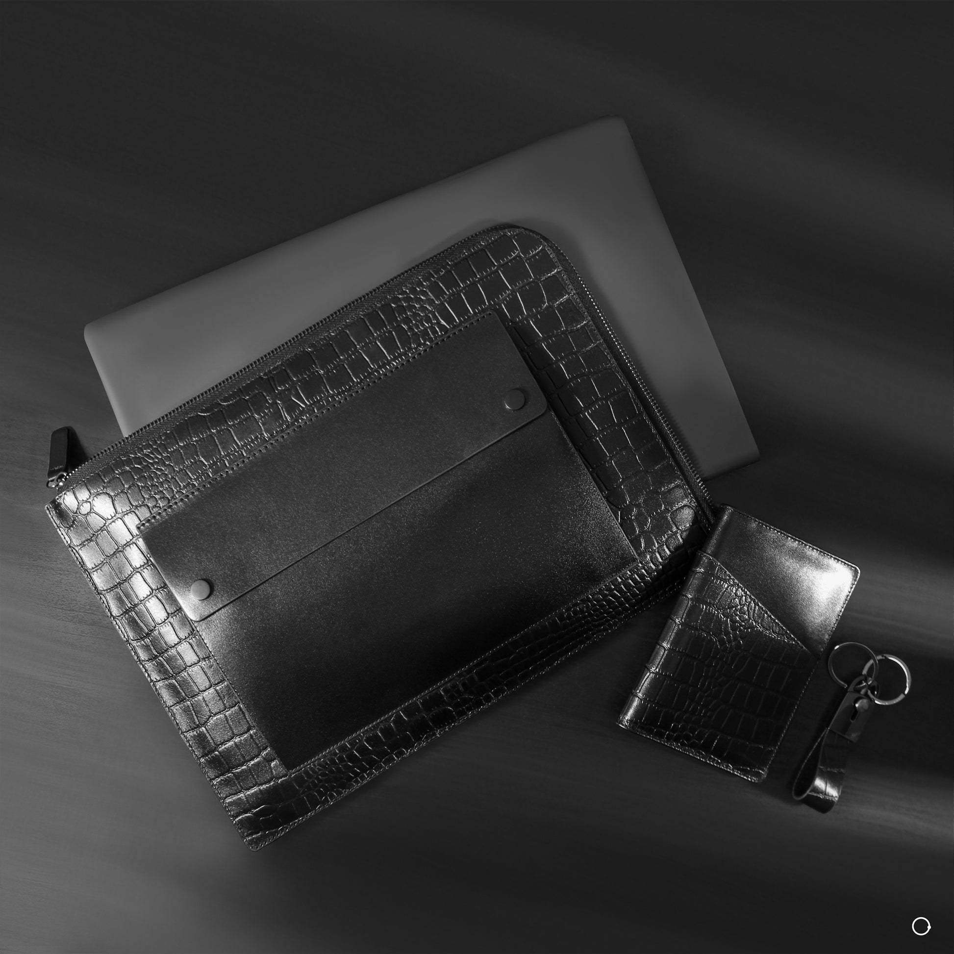 Timeless Genuine Laptop Sleeve from Soft, shiny leather and texture Crocodile leather, 24 ×34, Fits 13.3-inch laptops with Back Holder, Large laptop pocket,1 Front Capsule pocket and zipper Closure.